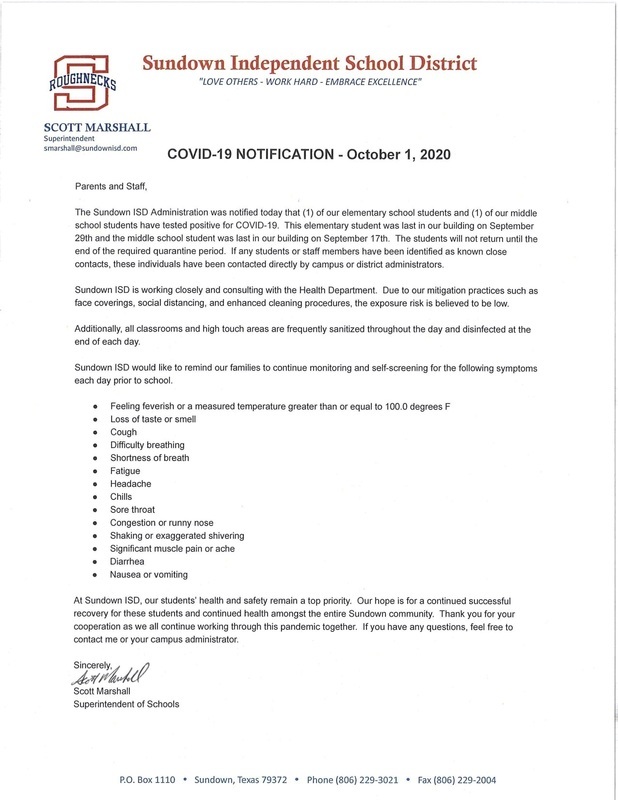 COVID-19 Notification - 10/1/2020