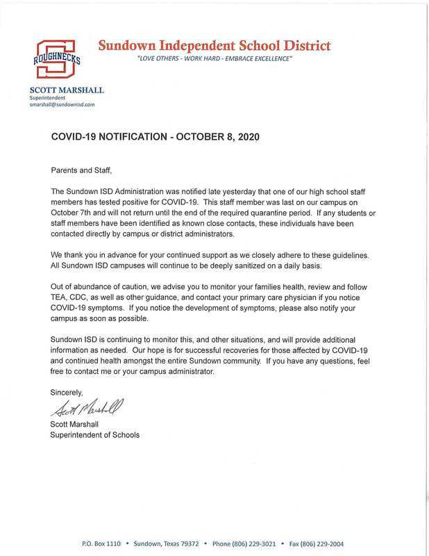 COVID-19 Notification - 10/8/2020