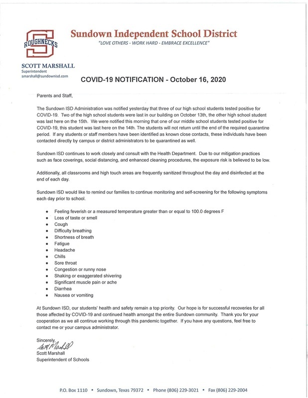 COVID-19 Notification - 10/16/2020