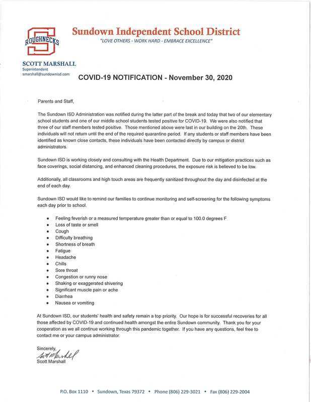 COVID-19 Notification - 11/30/2020
