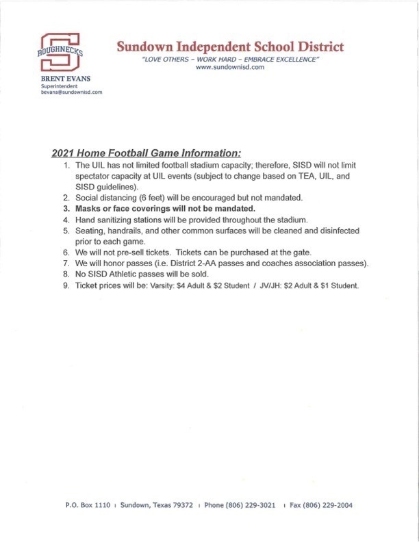 2021 Home Football Game COVID Information